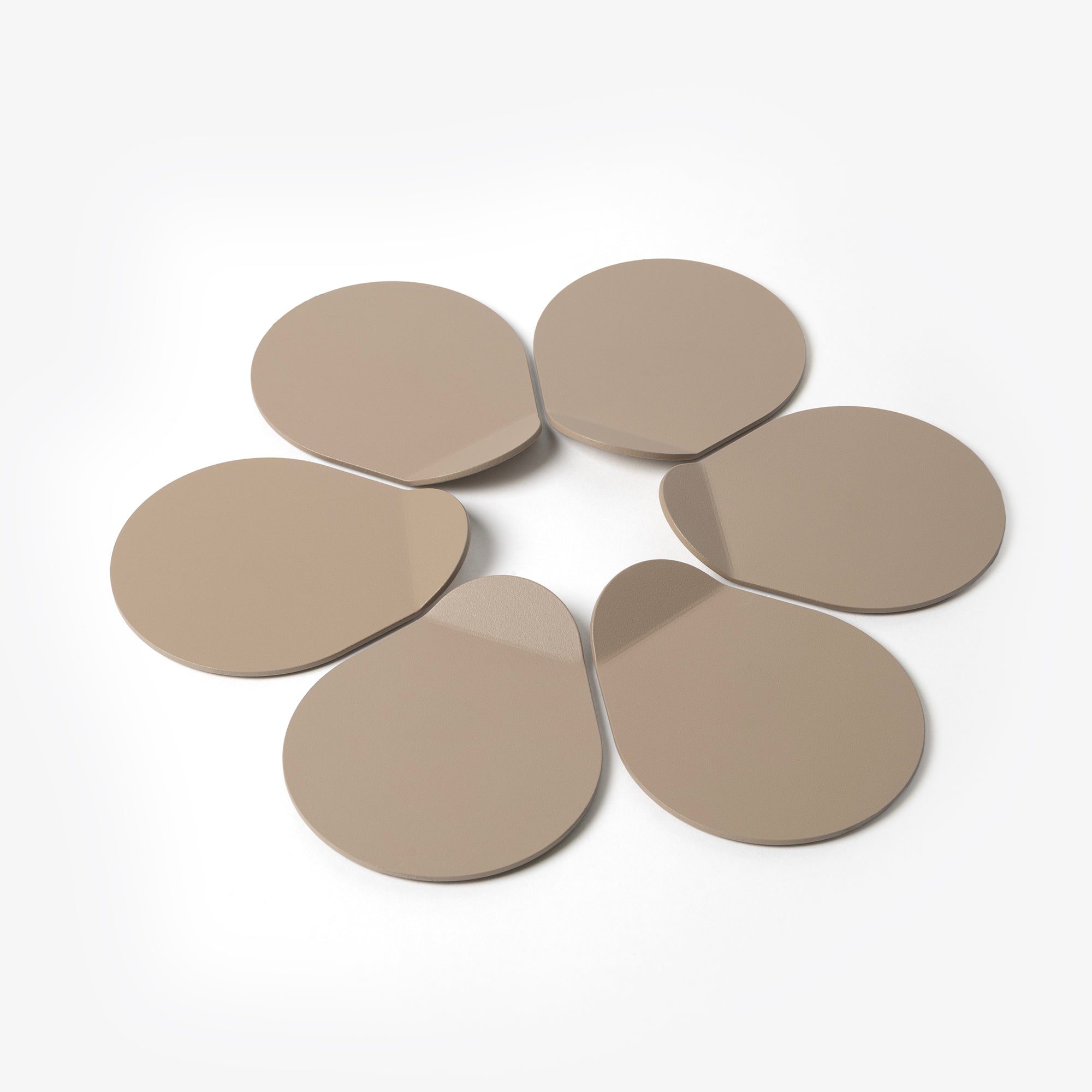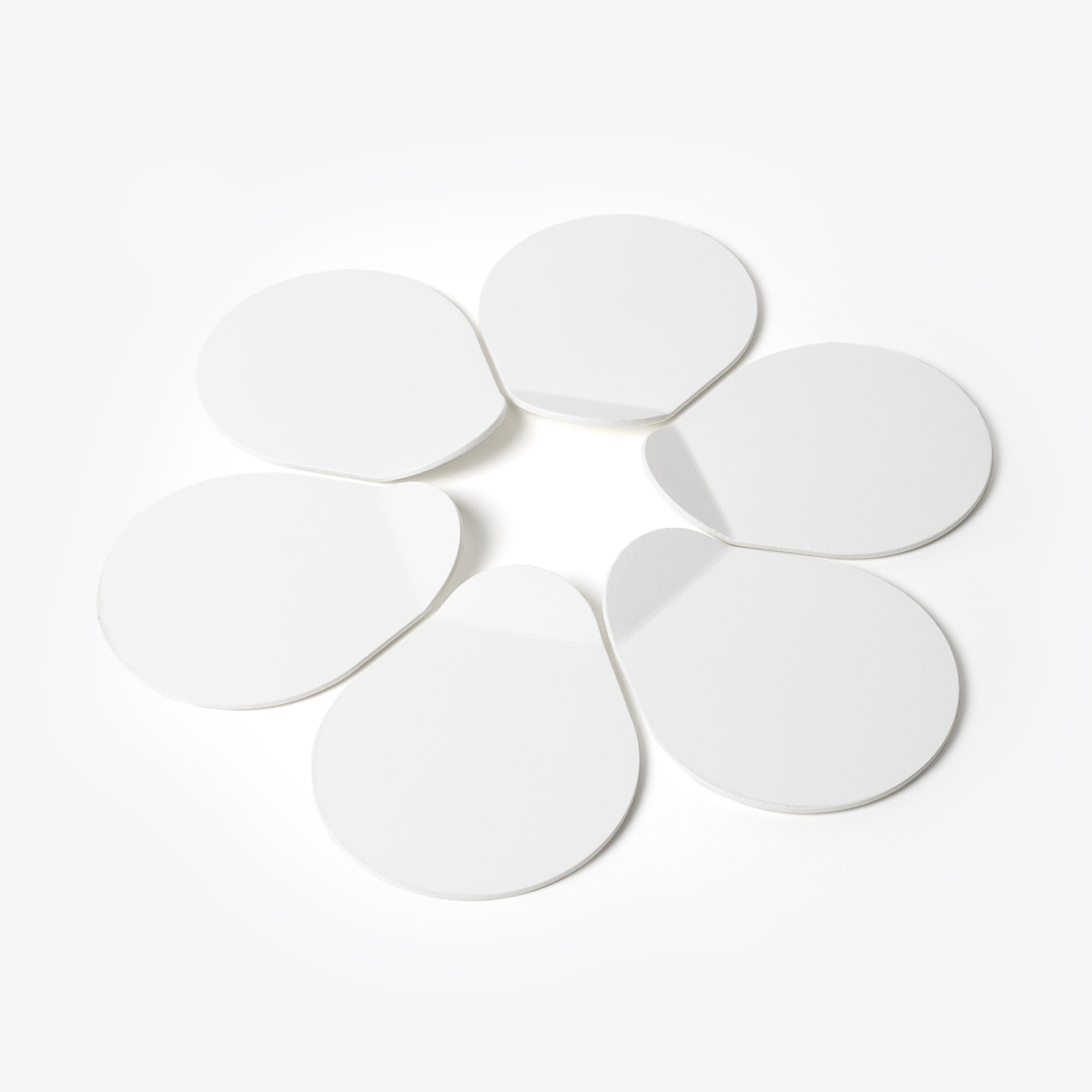 Das Drop Untersetzer-Set schützt nicht nur effektiv deine Möbel – es ist gleichzeitig ein echtes Designstatement. Dank der cleveren Form lässt sich jeder Untersetzer mühelos aufnehmen und abstellen. Zusammengelegt bilden die sechs Elemente eine stilvolle Blume – perfekt für eine harmonische Tischgestaltung.