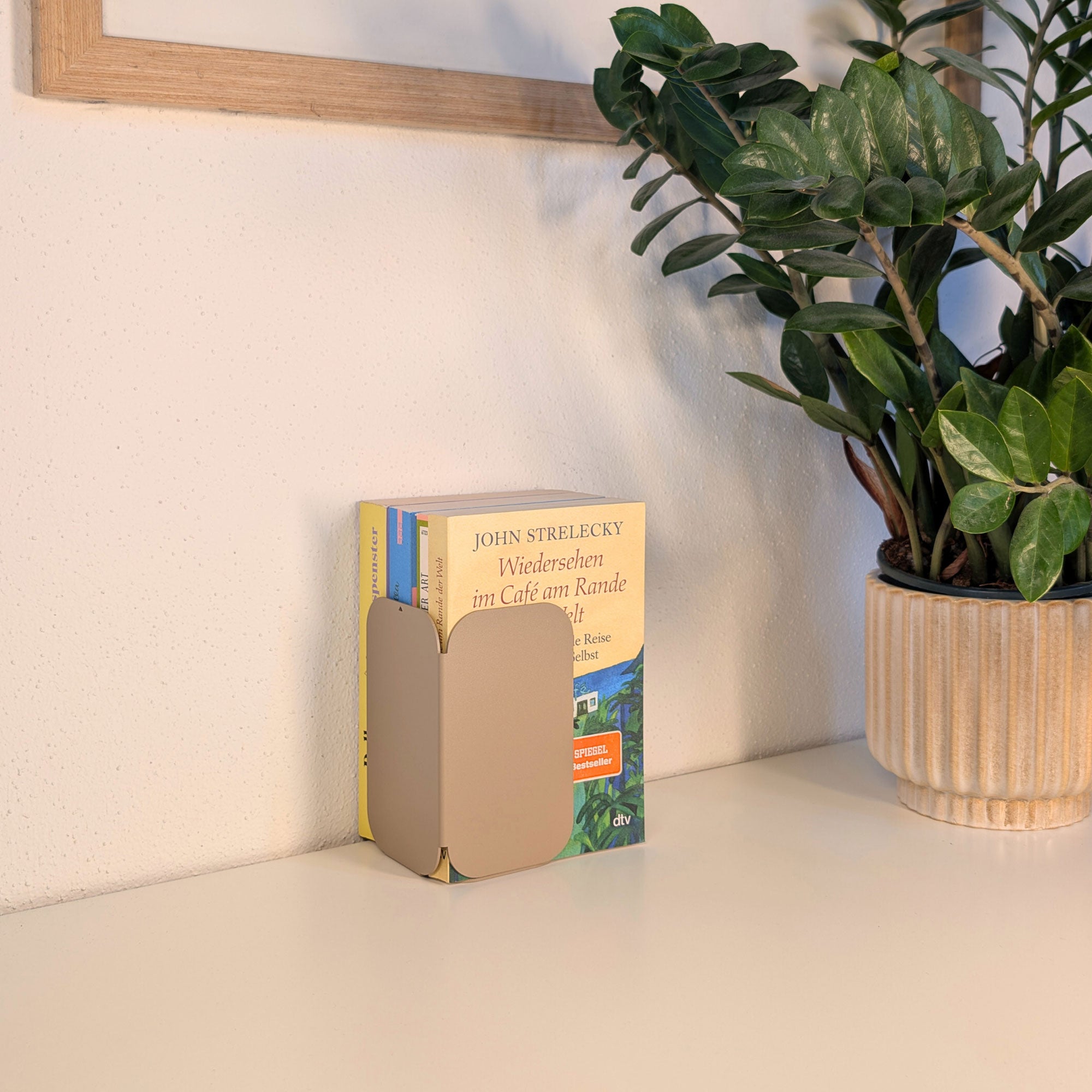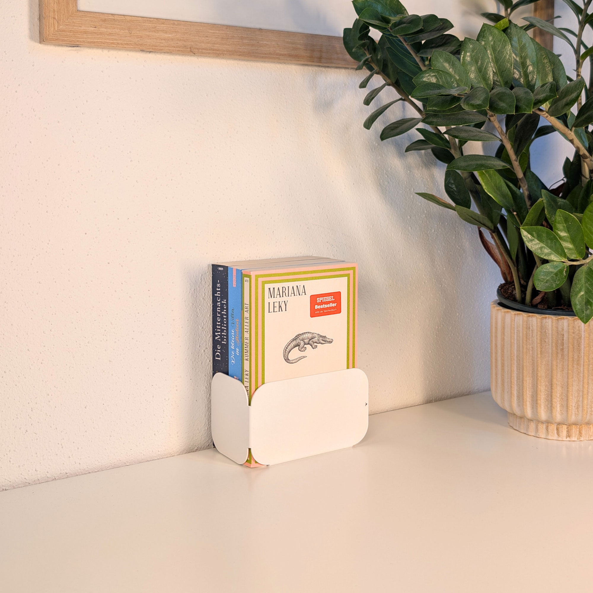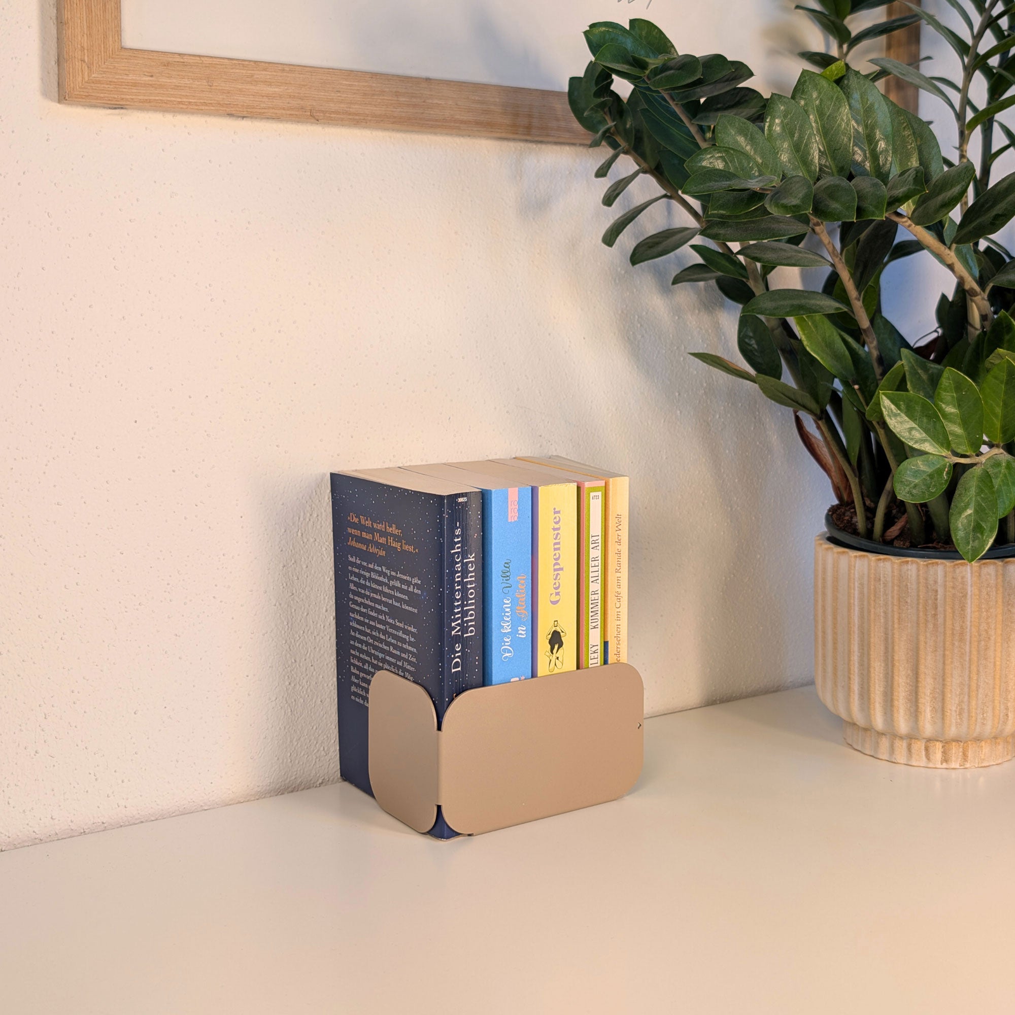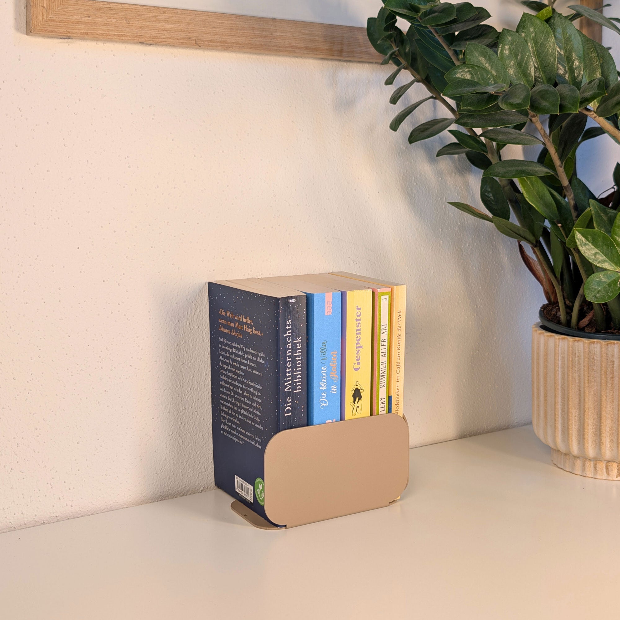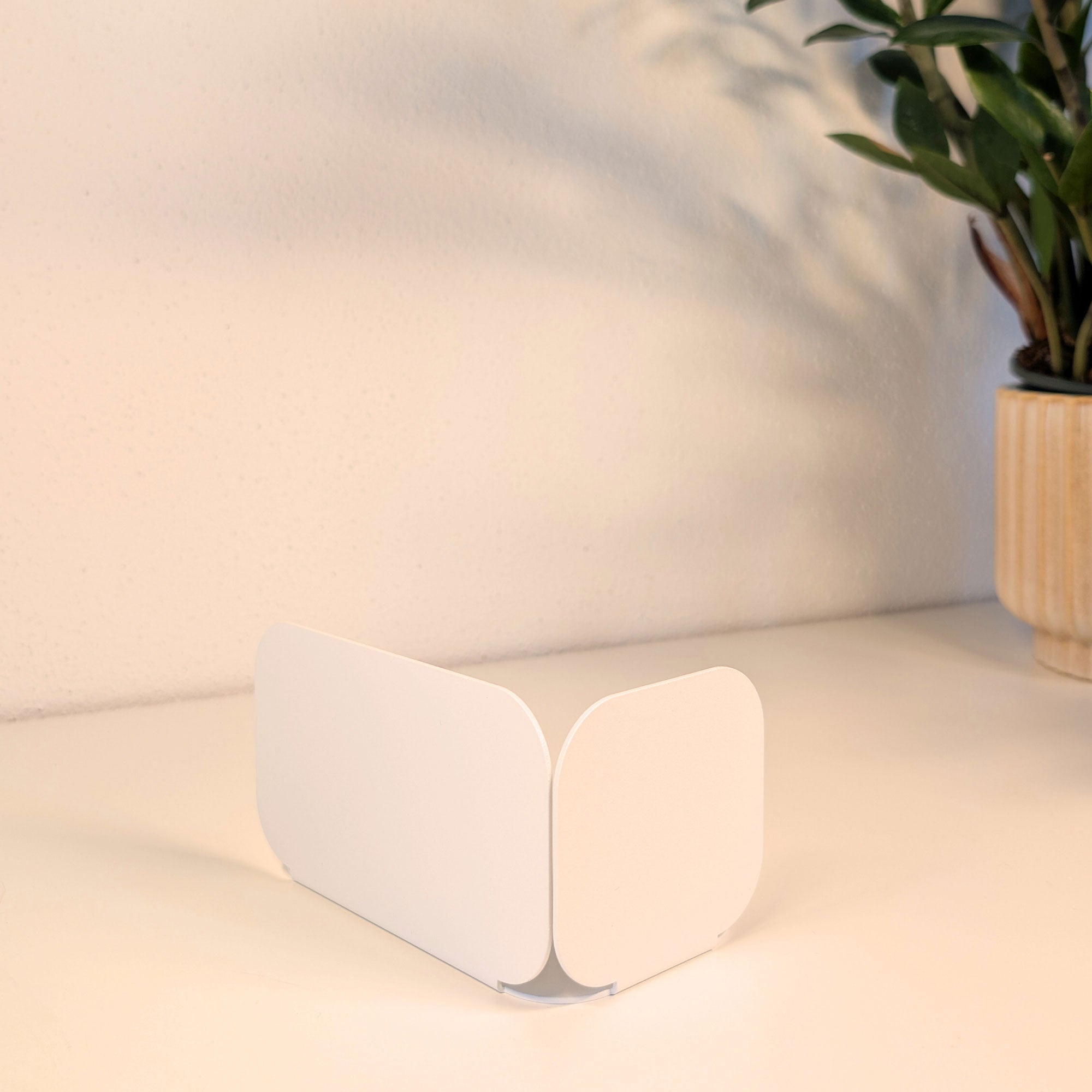 Minimalistisch, wandelbar, funktional: Diese pulverbeschichtete Metall-Buchstütze überzeugt durch ihre dreiseitige Form mit sanften Rundungen. Je nach Drehung entsteht eine neue Geometrie – schmal, breit oder geschlossen. Gefertigt aus 1 mm Stahl (14 × 8 × 8 cm), bietet sie stabilen Halt für Bücher und setzt zugleich ein stilvolles Statement im Regal oder auf dem Tisch.